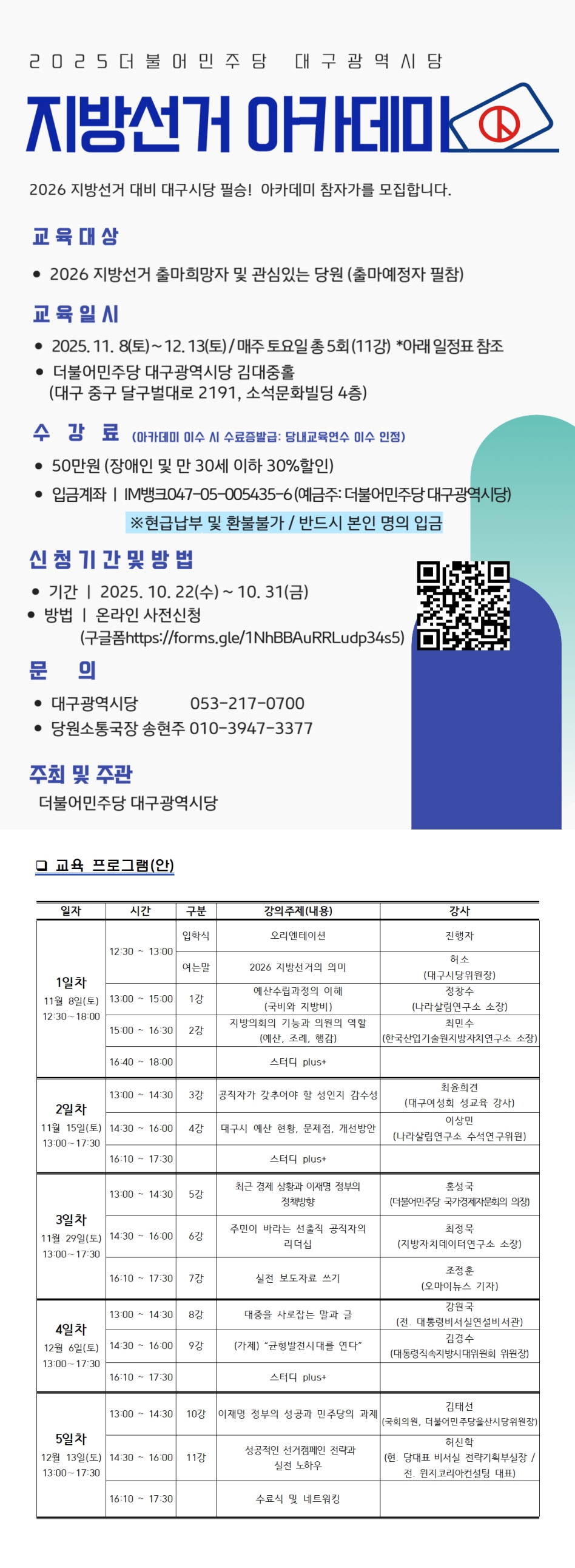 2025 더불어민주당 대구시당 지방선거 아카데미 신청 안내