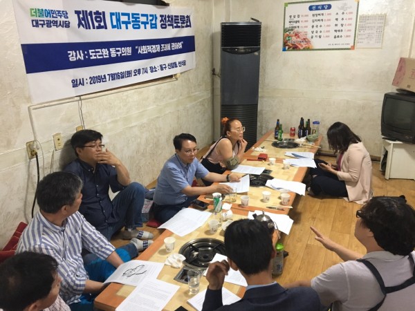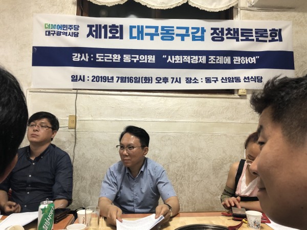 2019.07.16 제1회 대구동구갑 정책토론회 김백현 동구갑 0 5023 2019.07.17 12:04 주소 복사 동구갑지역위에서 매월 1회 동구지역의 정책관련해서 당원 및 상무위원회 대상으로 정책토론회를 가지기로 했습니다. 첫번째 회의는 7월 16일 화요일 저녁7시에 대구 동구에서 이슈가 되고 있는 사회적 경제 기업 조례 관련해서 도근환 동구의원이 강사로 설명해주고, 서로 대화하는 유익한 시간을 가졌습니다.