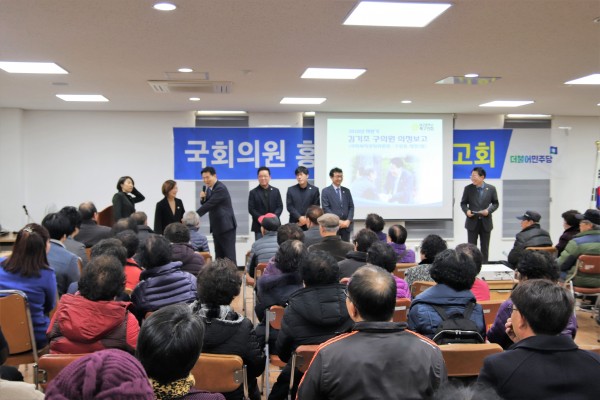 ‘힘이되는 정치, 좌절없는 세상’이라는 주제로 국회 산업통상자원중소벤처기업위원회 간사, 국회 4차산업특별위원회 위원과 민주당 정책위, 지방혁신균형발전추진단 부단장 활동 등의 활동을 설명하고 구암동고분군 국가사적지정, 동호마을 연결도로, 북구화물차공영차고지, 라이프타임 케어센터 확정 등 예산확보를 통해 새롭게 탈바꿈하게 된 주요 사업을 자세하게 소개했다.