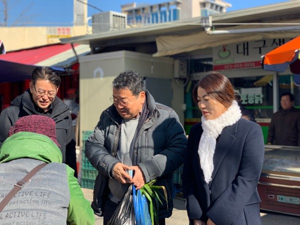 20190201-동구을 반야월시장민생탐방 최완식 동구을 0 6366 2019.02.24 13:59 주소 복사 [ 설맞이 장보기 ]□ 일시 : 2/1 (금) 12:20 ~ 14:00□ 장소 : 반야월시장□ 참석 : 대구 동구을 지역위원장 이승천, 이은애 동구의원설을 맞이 하여 주민, 상인분들께 인사를 드리고 장보기를 하였습니다. 따뜻한 설 명절 보내십시오.더불어민주당 대구동구을 지역위원회#더불어민주당 #대구동구을지역위원회 #이승천위원장 #바꿔내자_2020! #제대로_일하자!