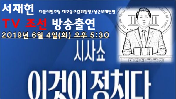 서재헌 동구갑위원장 TV조선 시사쇼 이것이 정치다 방송(19.06.04) 김백현 동구갑 0 4331 2019.06.06 19:12 주소 복사 https://youtu.be/cvY4DF3vtvg + 3588 90분의 토론중에 서재헌위원장 하이라이트 영상입니다.단지 젊은 정치인이 장점이 아니라, 능력있고 믿음이가는 정치인이 바로 서재헌 지역위원장입니다.