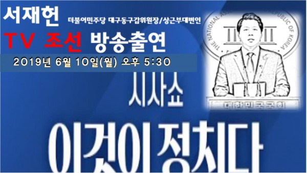 서재헌 동구갑 위원장 TV조선 이것이 정치다 토론(2019.06.10) 김백현 동구갑 0 4312 2019.07.04 01:05 주소 복사 https://youtu.be/H32tpfDDWwk + 3478 서재헌 대구동구갑위원장이 상근부대변인으로 TV조선에서 더민주당을 대변하는 토론입니다.